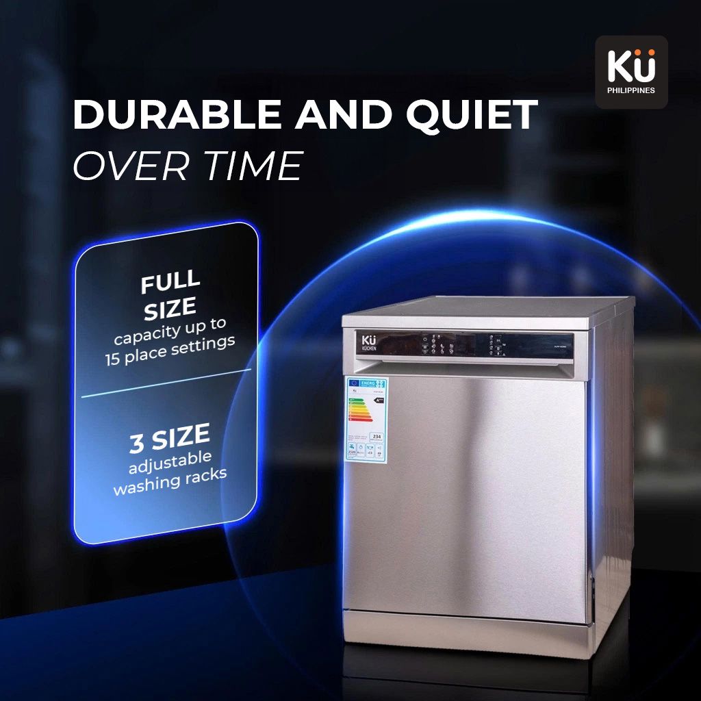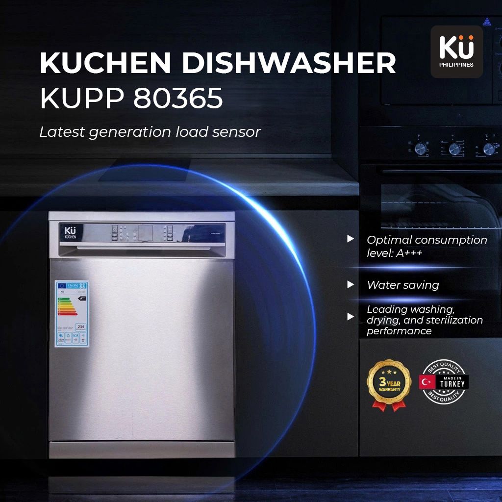 The KUPP 80365 full-size dishwasher can wash up to 15 place settings, including pots, chopping boards, frying pans, and more. The three adjustable racks provide convenience and comfort for users. The electronic control panel with a full-function display features large, clear buttons arranged intuitively for user-friendly operation.