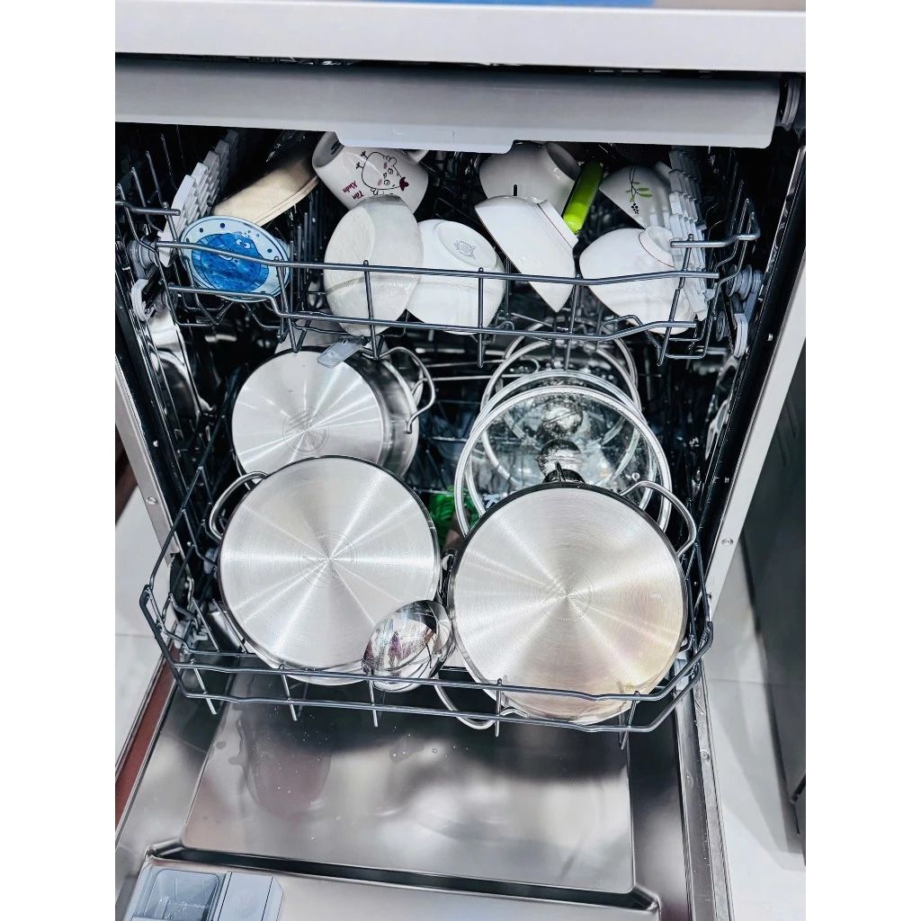 • Large full-size capacity accommodates 13–15 place settings plus pots, pans, and adjustable 3-tier racks.