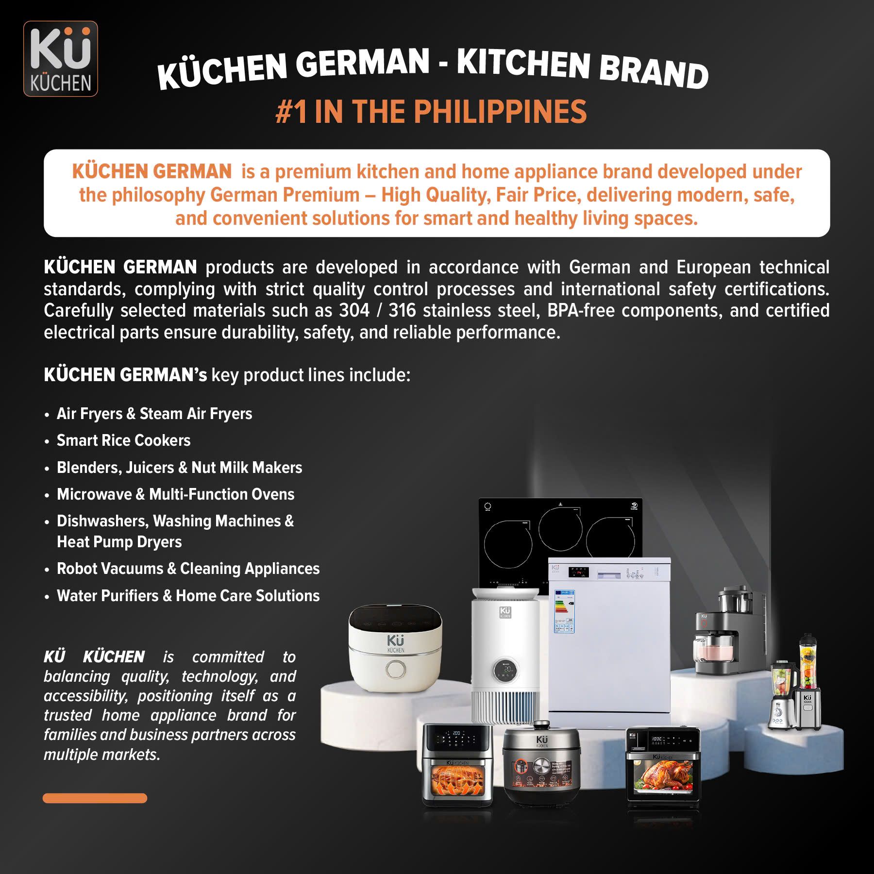 By continuously balancing quality, technology, and accessibility, KÜ KÜCHEN German positions itself as a trusted home appliance brand for families and business partners across multiple markets.