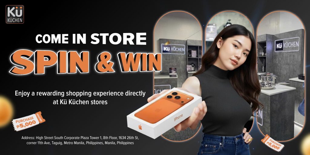 During the campaign period, customers who make an in-store purchase of ₱5,000 or more at any Kü Küchen German store will receive 01 immediate spin on the Lucky Wheel.